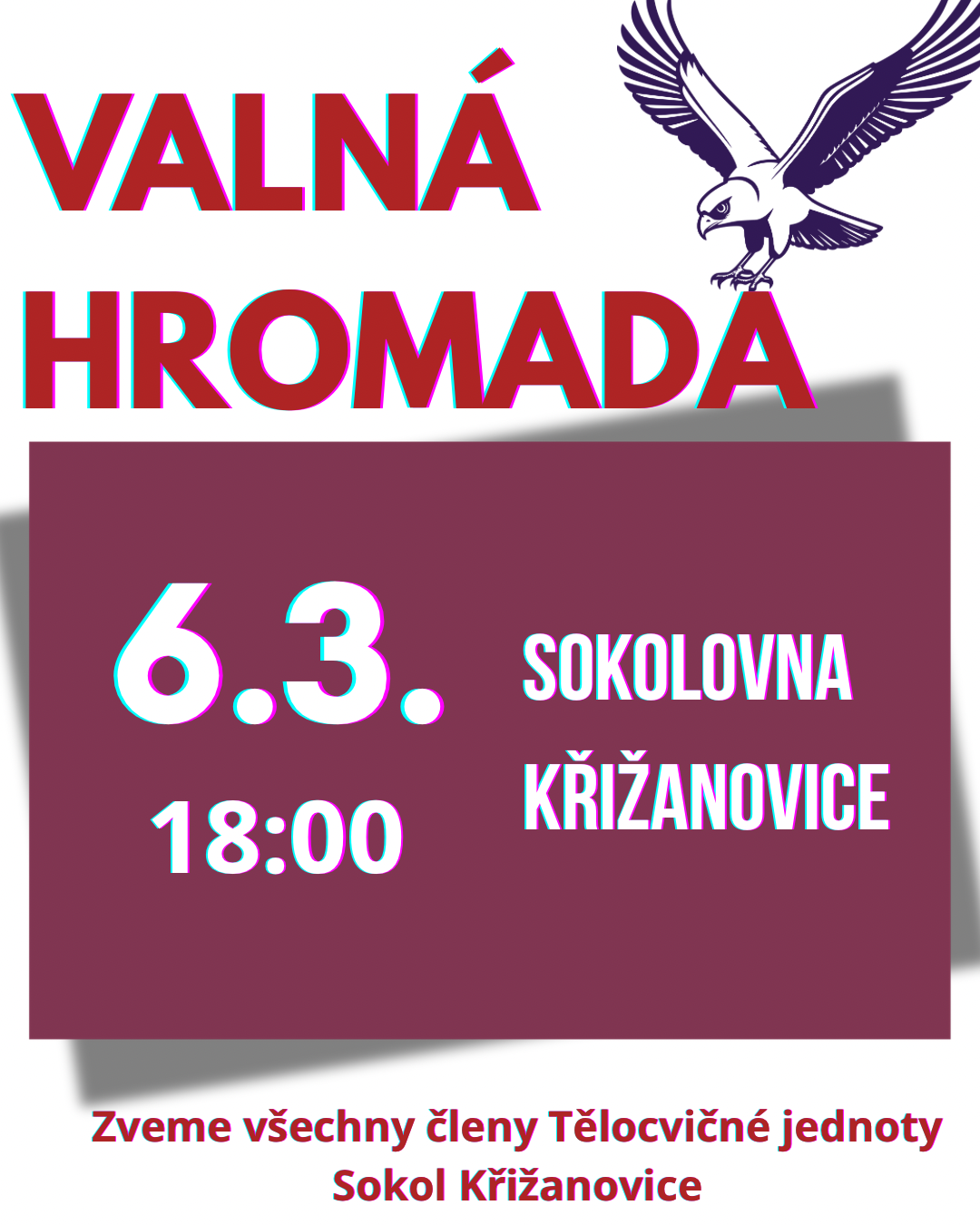 Zveme všechny členy na Valnou hromadu 6.3 v naší sokolovně.